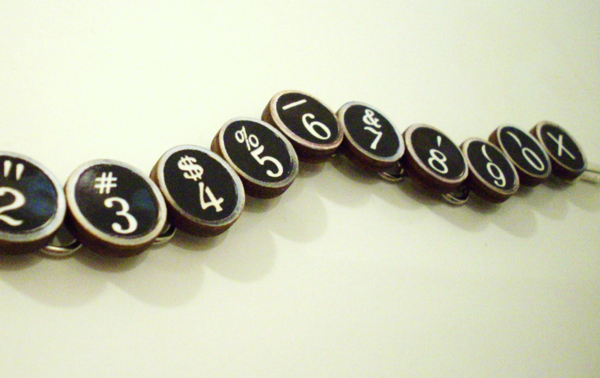 The white antique typewriter bracelet is bigger and more eye-catching that the black version (above), but with less links it’s equally weighted and still looks delicate and sweet. Want it? It's here!