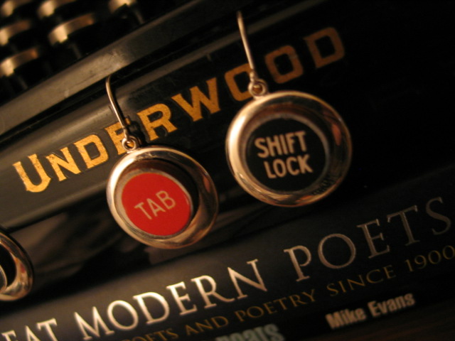 Made from the same replica antique-style wooden typewriter keys as the cuff links (above), check out these cool typewriter key earrings. Available here!